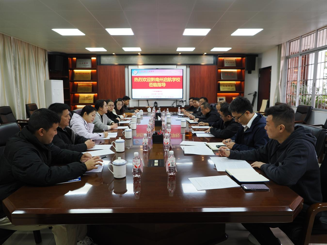 为深化校际合作,共探专门教育发展新路径,2025年11月19日,黔南州启航学校一行在孙丽莎副书记的带领下莅临我校考察交流。作为我校的定点帮扶单位,黔南州启航学校此行旨在通过实地考察、课堂观摩与座谈研讨等多种形式,深入学习我校在学生管理、课程建设及家庭教育指导等方面的成熟经验,共同推动专门教育的高质量发展。