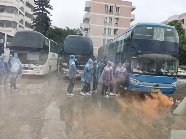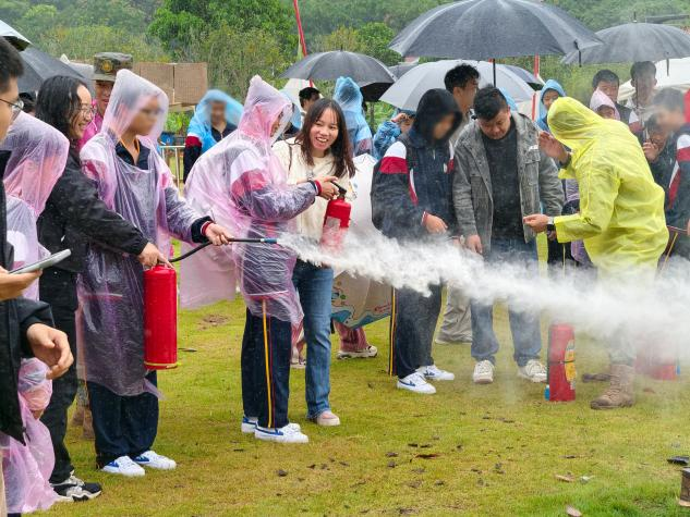随后到达鹤鸣涧营地,同步开展消防实践环节。在专业人员指导下,党员同志带头示范消防器具使用方法,从灭火器的提、拔、握、压到消防水带的连接、展开,每一个步骤都细致讲解、规范操作,教工团员与学生代表紧随其后实操练习,在“教、学、练”的互动中熟练掌握灭火技能;伤口包扎环节,党员老师结合应急救护知识,手把手指导师生学习三角巾的包扎技巧,模拟头部、手臂等部位受伤场景,让大家在实践中掌握自救互救本领;大巴逃生演练环节,党员同志迅速化身“指挥员”,组织师生模拟车辆突发险情场景,指导大家弯腰、捂鼻、有序撤离,严格按照逃生路线快速疏散,整个过程紧张有序,充分展现了党团组织引领下的高效协作与应急处置能力。