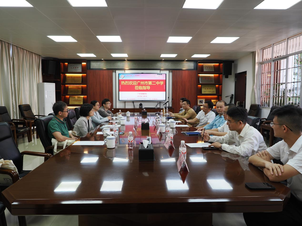 校际联动凝智慧,教育同心促发展。为促进办学经验交流互鉴,共同探索提质增效的教学新模式。2025年11月5日上午,广州市第二中学一行在李绮华副校长的带领下莅临我校,开展了一场全面而深入的学习交流活动。